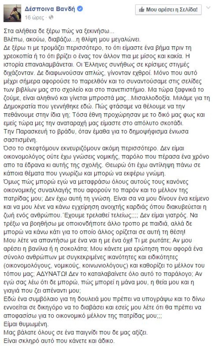 Η ανάρτηση της Δέσποινας Βανδή